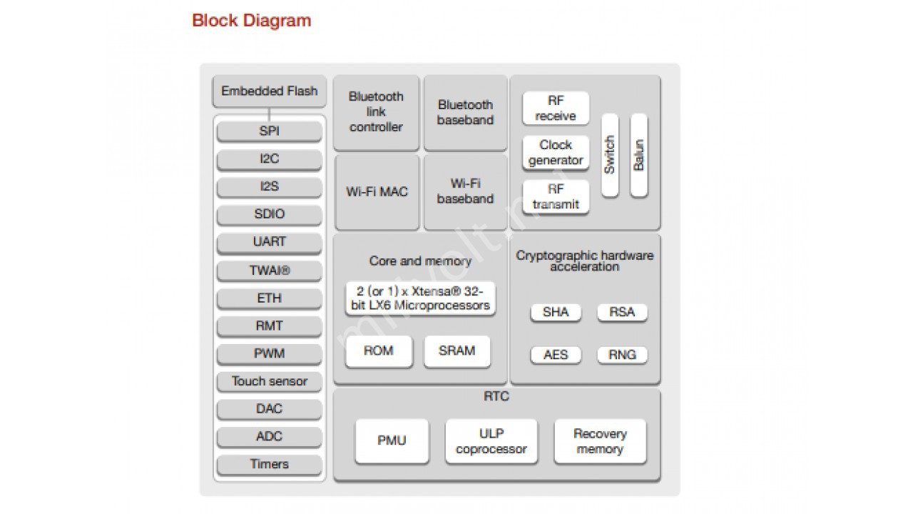 Çevresel: UART, SPI, I2S, ADC, DAC, I2C